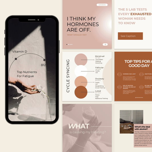 The Aesthetic Essentials Template Bundle was made for health pros who are tired of wasting time staring at a blank screen and cobbling together off-brand Canva designs. Inside, you’ll find 50 chic, professional templates designed to make your content look as good as your expertise sounds.